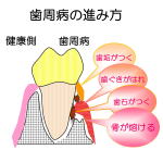 歯肉炎は病気が歯ぐきに止まっている時期で、歯ぐきのはれや、出血があります。ただ、飲食リズムを整え、歯みがきで歯垢を除けばで数日でなおります。放置すると歯周炎に進みます。